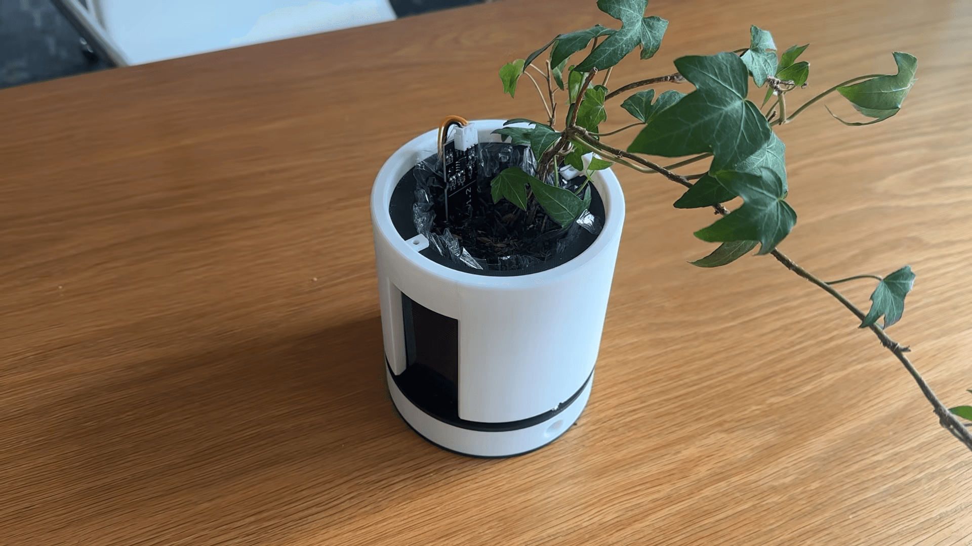 An ESP32-C3 development board serves as the brains of the operation. It’s set up with a capacitive soil moisture sensor, a great choice because they tend to last longer than other types. Power is courtesy of a small lithium-polymer battery and a solar panel, which keeps everything running off the juice from interior lighting alone.