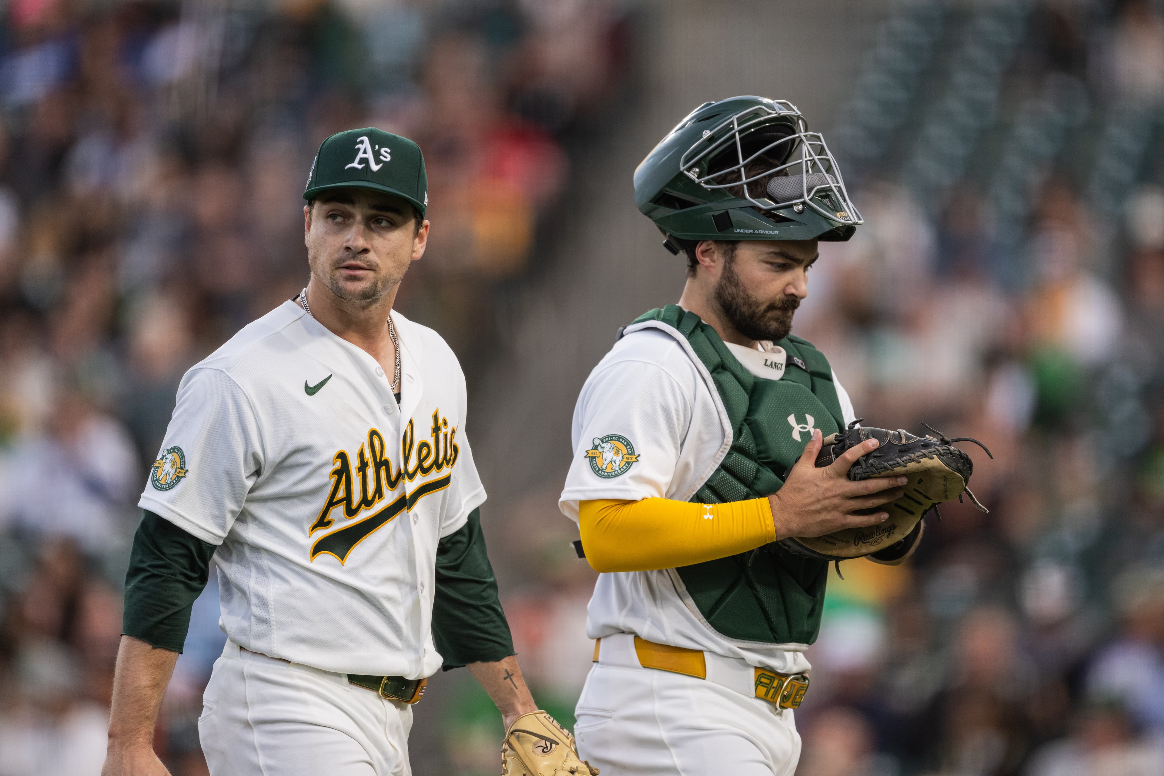 SACRAMENTO, CALIFORNIA - APRIL 15: J.T. Ginn #35 and Shea Langeliers #23 of the Athletics walk off the field in the top of the second inning against the Texas Rangers at Sutter Health Park on April 15, 2026 in Sacramento, California. All players are wearing the #42 in honor of Jackie Robinson Day. (Photo by Justine Willard/Athletics/Getty Images) | Getty Images Morning A’s fans!We had a bit of a rough weekend as the Athletics dropped two of three to the Chicago White Sox.