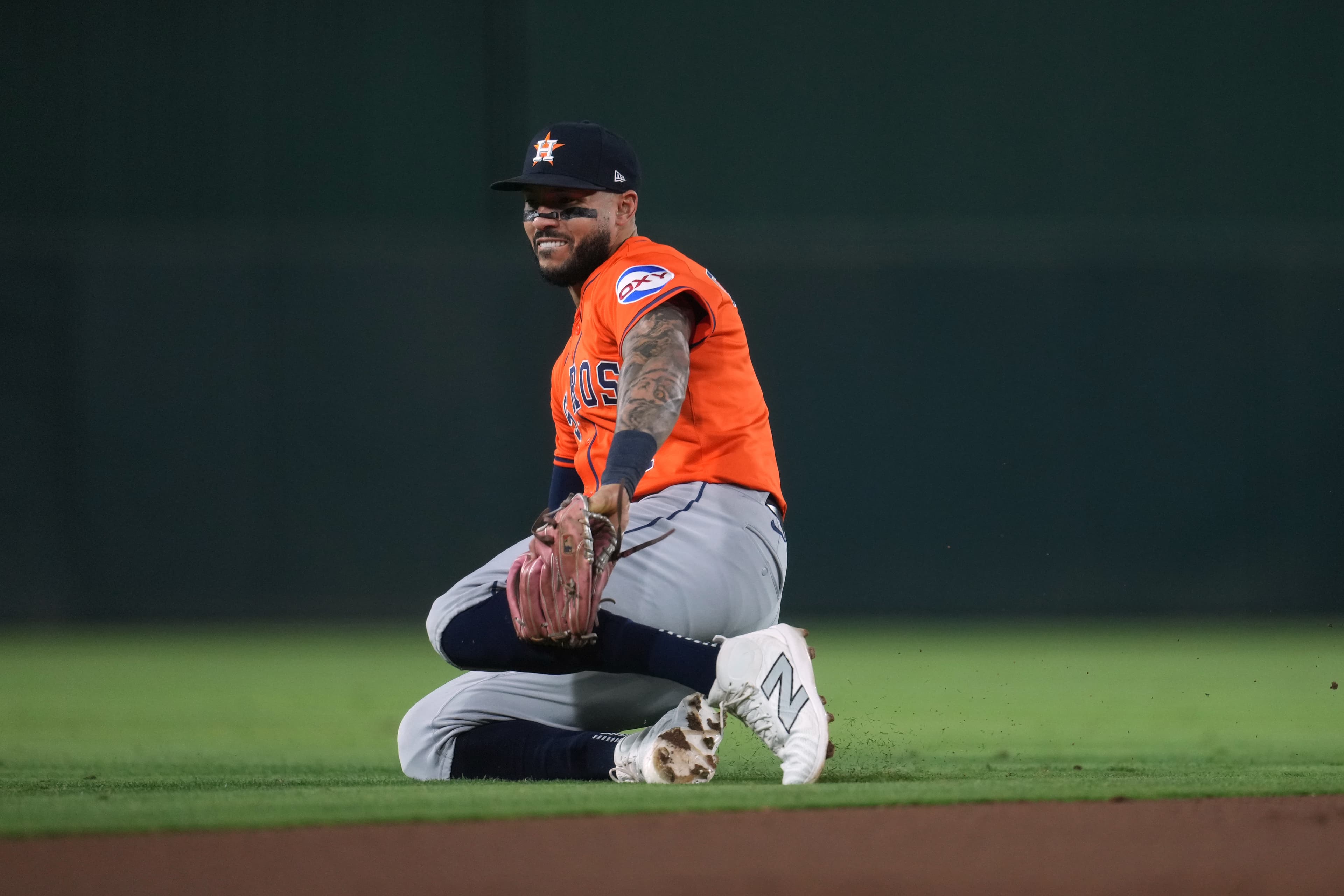Sep 24, 2025; West Sacramento, California, USA; Houston Astros shortstop Carlos Correa (1) fields a ground ball against the Athletics in the third inning at Sutter Health Park. Mandatory Credit: Cary Edmondson-Imagn Images | Cary Edmondson-Imagn Images The Houston Astros (8-14) look to salvage the finale of this three-game series against the St. Louis Cardinals (12-8) at Daikin Park.