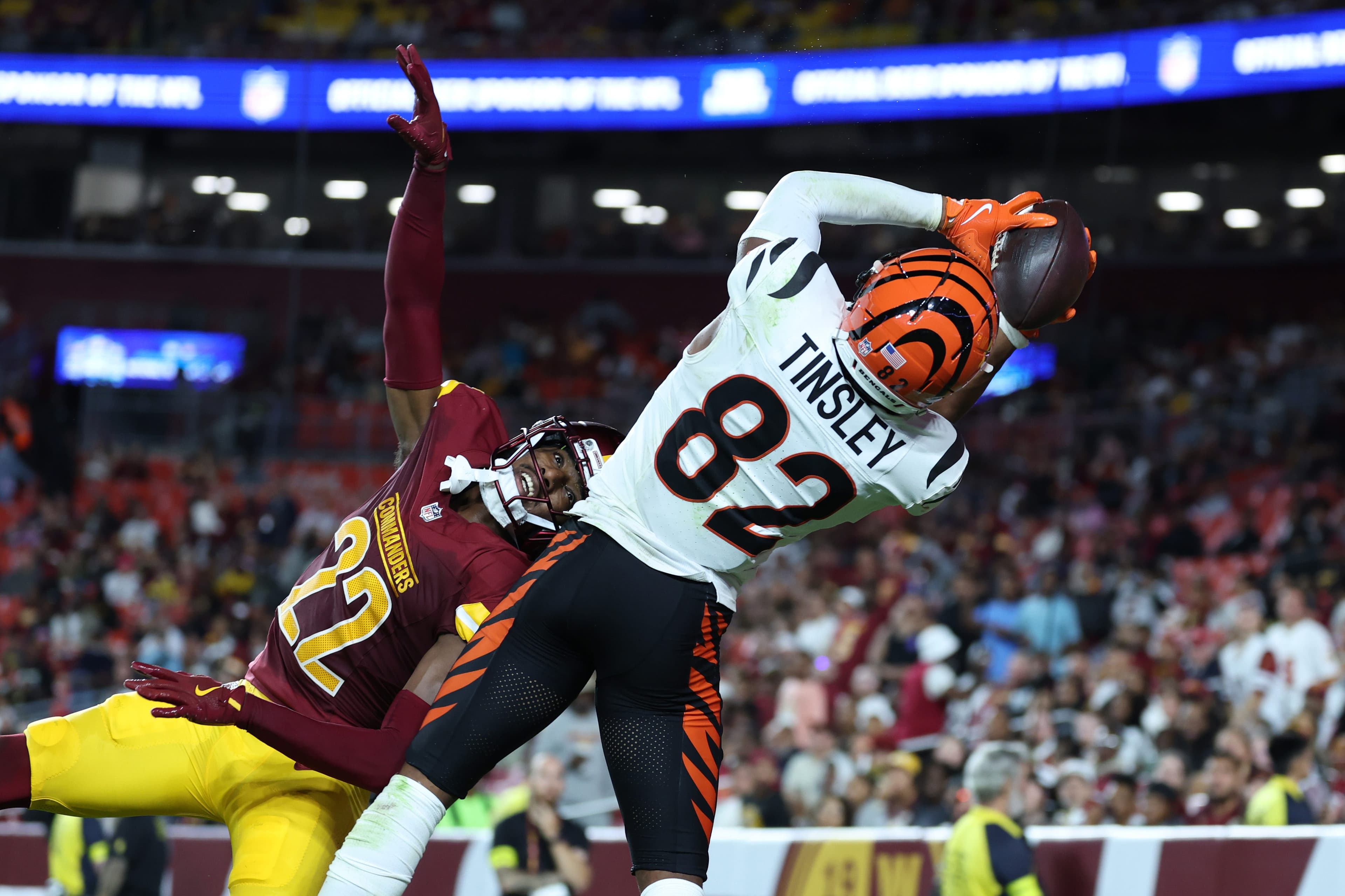 After spending the 2024 season on Washington’s practice squad, he signed with the Bengals.The 2025 season marked Tinsley’s NFL emergence. Playing in 17 games with four starts, he recorded eight receptions for 116 yards and two touchdowns, averaging 14.5 yards per catch. His longest reception went for 27 yards, and he proved to be a reliable depth option in a competitive Bengals receiving corps.