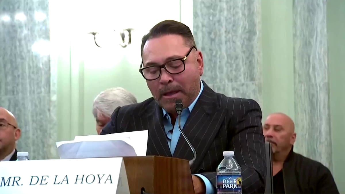 Former boxing champion Oscar De La Hoya testified before the US Senate against the Boxing Revival Act, warning the bill would give fighters fewer choices and less control over their careers if it replaced the Ali Act pic.