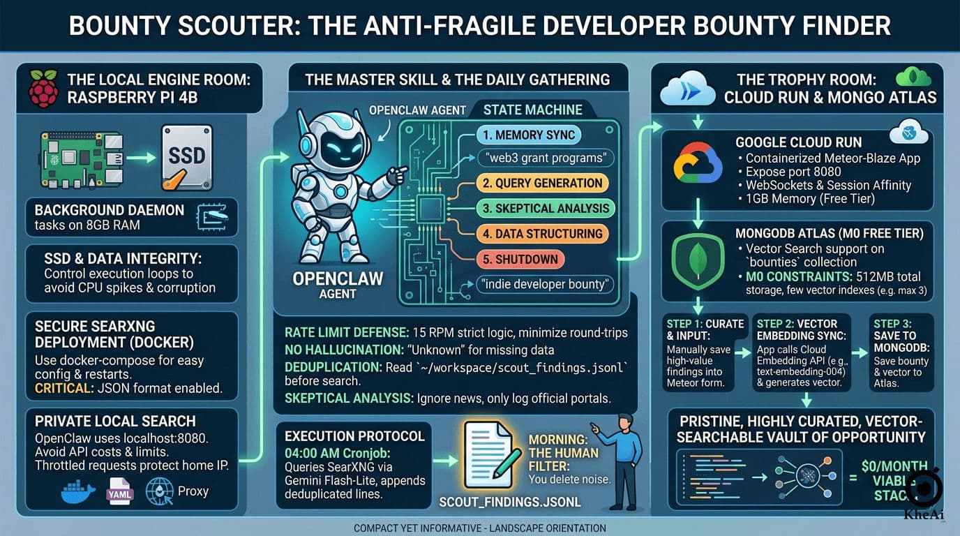 To solve this, I expanded the architecture into an Automated Intelligence Dev Bounty Scouter. KheAi's Dev Bo