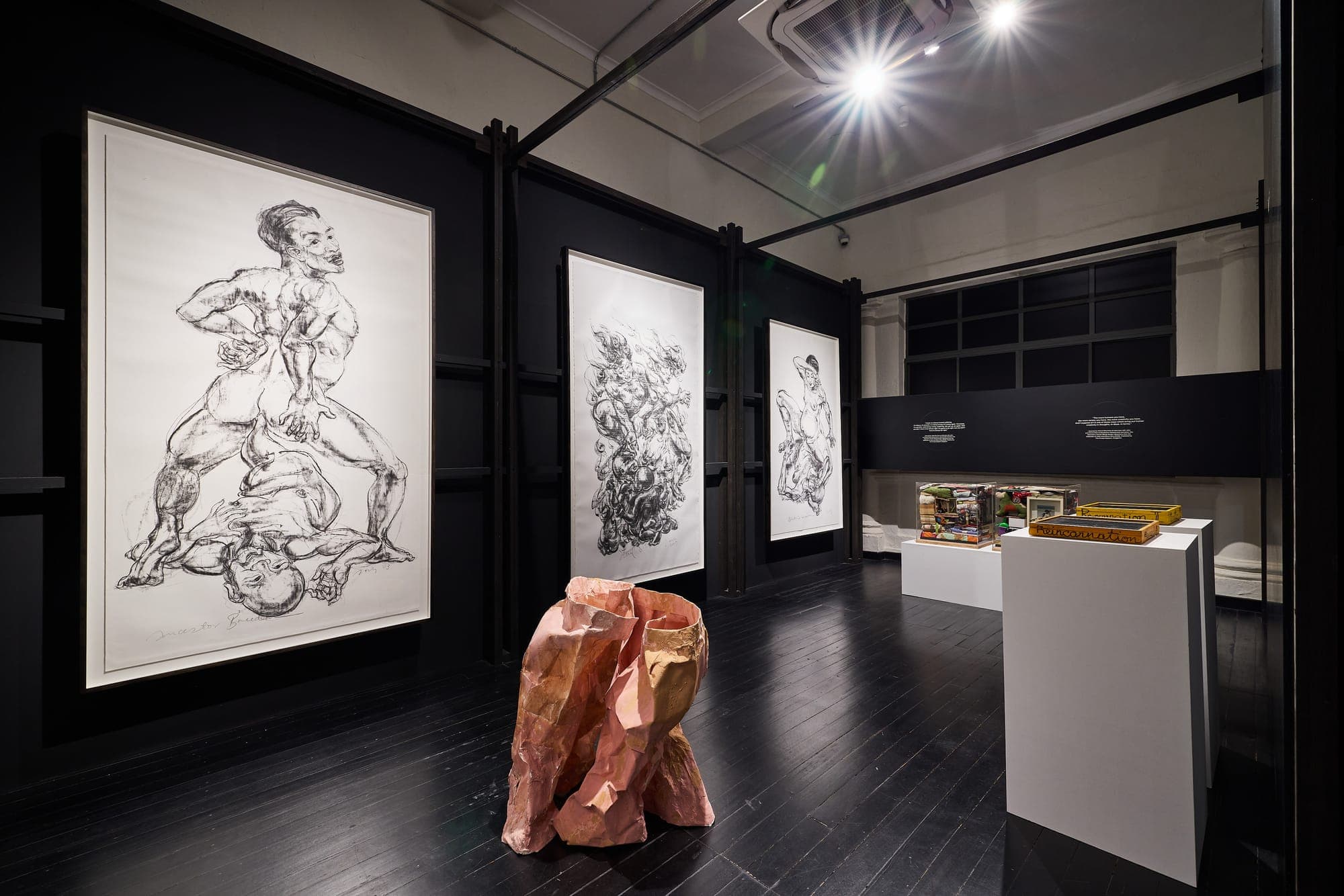 Courtesy The Private Museum.In “Human Being Human,” the body emerges as the exhibition’s central ground of inquiry. As Maurice Merleau-Ponty writes in Phenomenology of Perception (1945), “the body is our general medium for having a world.” Experience is forged in strain and contact, the self an ongoing process of becoming. Shaped over 25 years by doctors John and Cheryl Chia, the collection returns repeatedly to this premise.