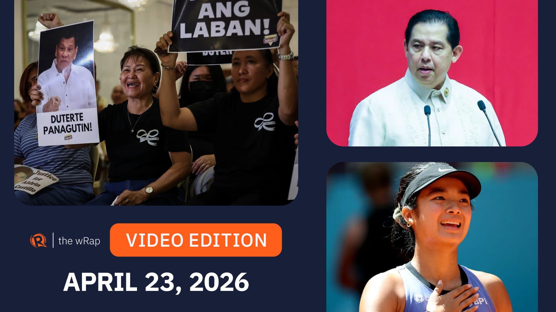 Here are today’s headlines – the latest news in the Philippines and around the world: Duterte is going to trial, ICC confirms all charges Former Philippine president Rodrigo Duterte will go on trial at the International Criminal Court. Martin Romualdez barred from leaving PH over alleged corruption The Sandiganbayan approved the Office of the Ombudsman’s request to block former speaker Martin Romualdez from leaving the country Wednesday, April 22. Iran tightens control of Hormuz after US calls off renewed attacks Iran seizes two ships in the Strait of Hormuz after US President Donald Trump indefinitely calls off attacks, risking continuation of peace talks.