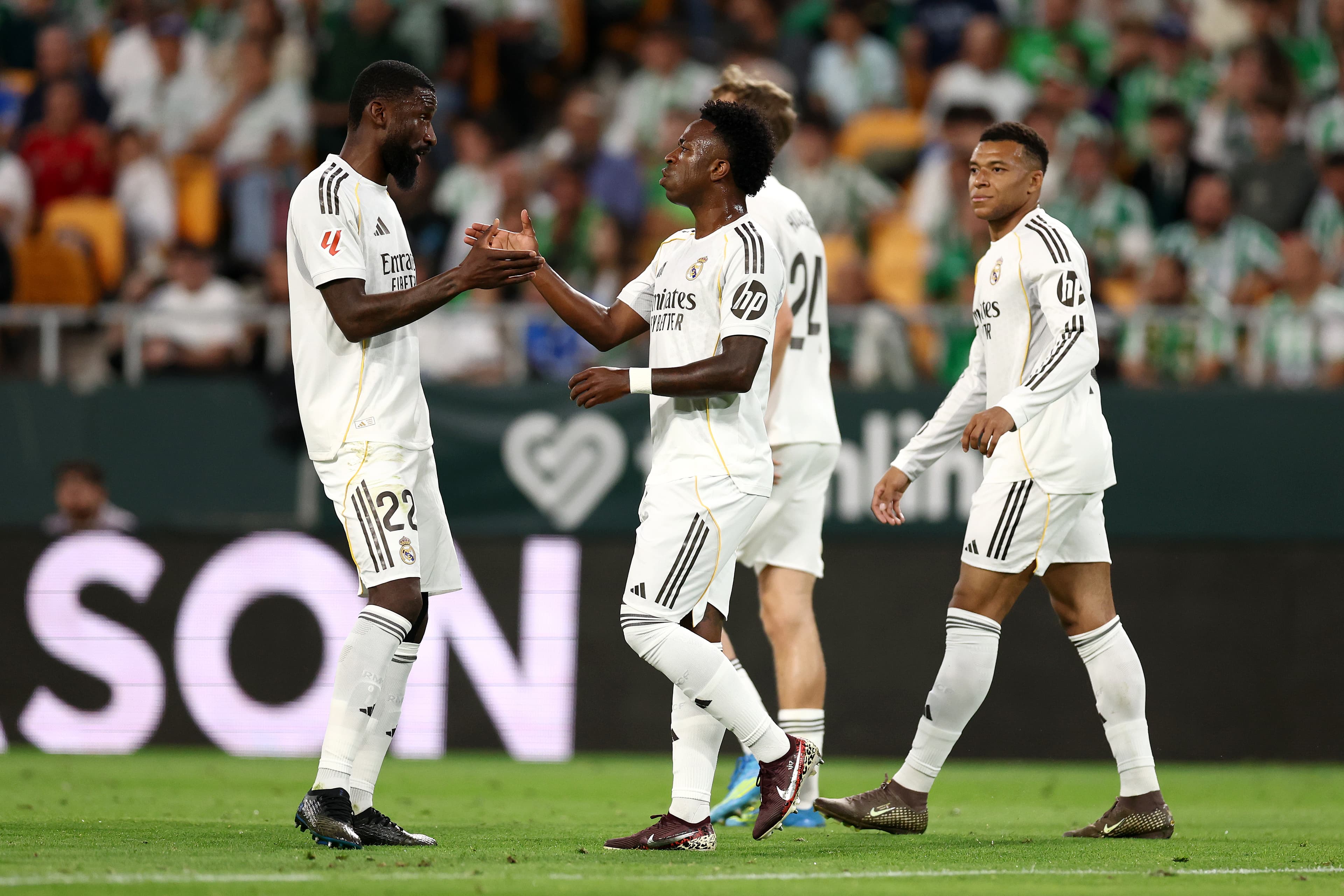 SEVILLE, SPAIN - APRIL 24: Vinicius Junior of Real Madrid celebrates scoring his team's first goal with teammate Antonio Ruediger during the LaLiga EA Sports match between Real Betis Balompie and Real Madrid CF at Estadio La Cartuja on April 24, 2026 in Seville, Spain. (Photo by Fran Santiago/Getty Images) | Getty Images Real Betis 1-1 Real Madrid (Vinícius Júnior). Not this year… This is my immediate reaction. Coming up: Low player ratings, awkward interviews and a podcast with myself and Kiyan.A handful of unexciting affairs, Clásico aside, remained until a dire season was done – and a trip to Real Betis represented a fresh opportunity for embarrassment.