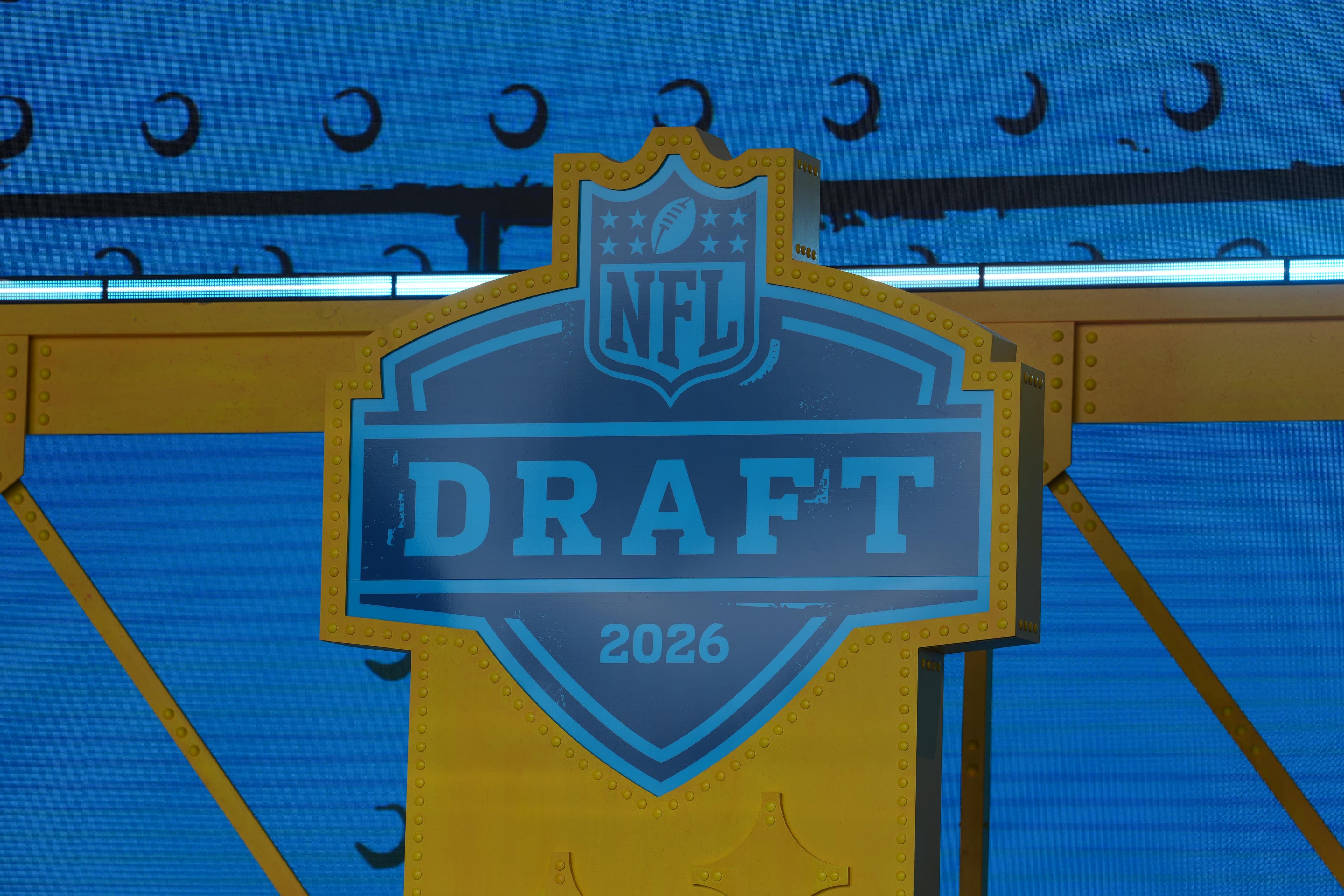 Apr 23, 2026; Pittsburgh, PA, USA; The 2026 NFL Draft logo on the theater stage at Acrisure Stadium. Mandatory Credit: Kirby Lee-Imagn Images | Kirby Lee-Imagn Images Welcome to your home for the Houston Texans’ 2026 NFL Draft.This board will be updatedLIVE during the NFL Draft on Thursday, Friday, and Saturday. Be sure to join us live in the comment section as we track and update the board with each selection in real time.