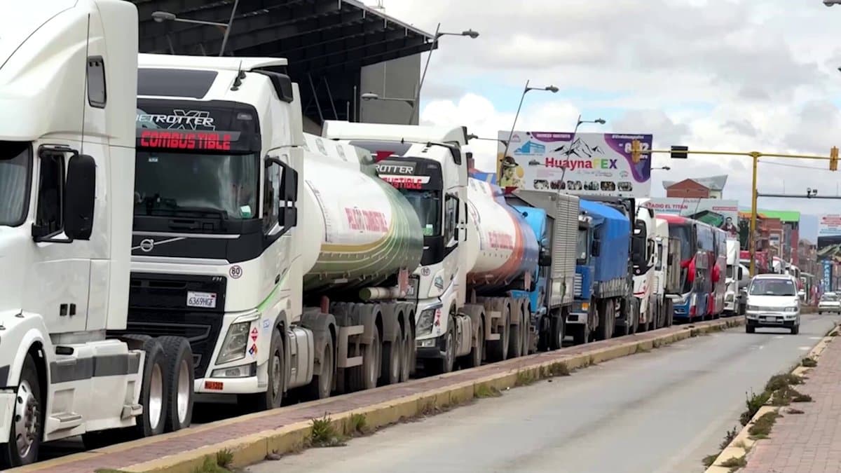 Long lines of trucks stretched outside fuel stations in El Alto, Bolivia as the country's worsening diesel shortage left drivers waiting for hours to fill up. Subsidized prices have fueled cross-border smuggling, adding to the crisis pic.