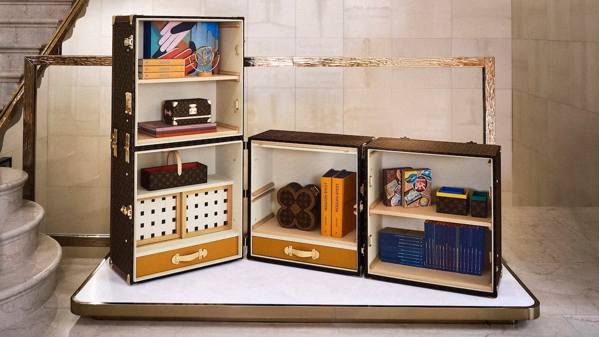 The effect echoes the architectural glass façade of Louis Vuitton’s Sanlitun flagship in Beijing, as well as the fluid silhouettes seen in collections by Nicolas Ghesquière.Elsewhere, craftsmanship takes on a more playful dimension. A football table in aquamarine tones features hand-painted mermaids and scaled leather legs, while the Kaléidoscope cabinet—constructed from hundreds of precisely cut leather facets—transforms storage into a sculptural, light-responsive object. Objects for Living Courtesy of Louis Vuitton.