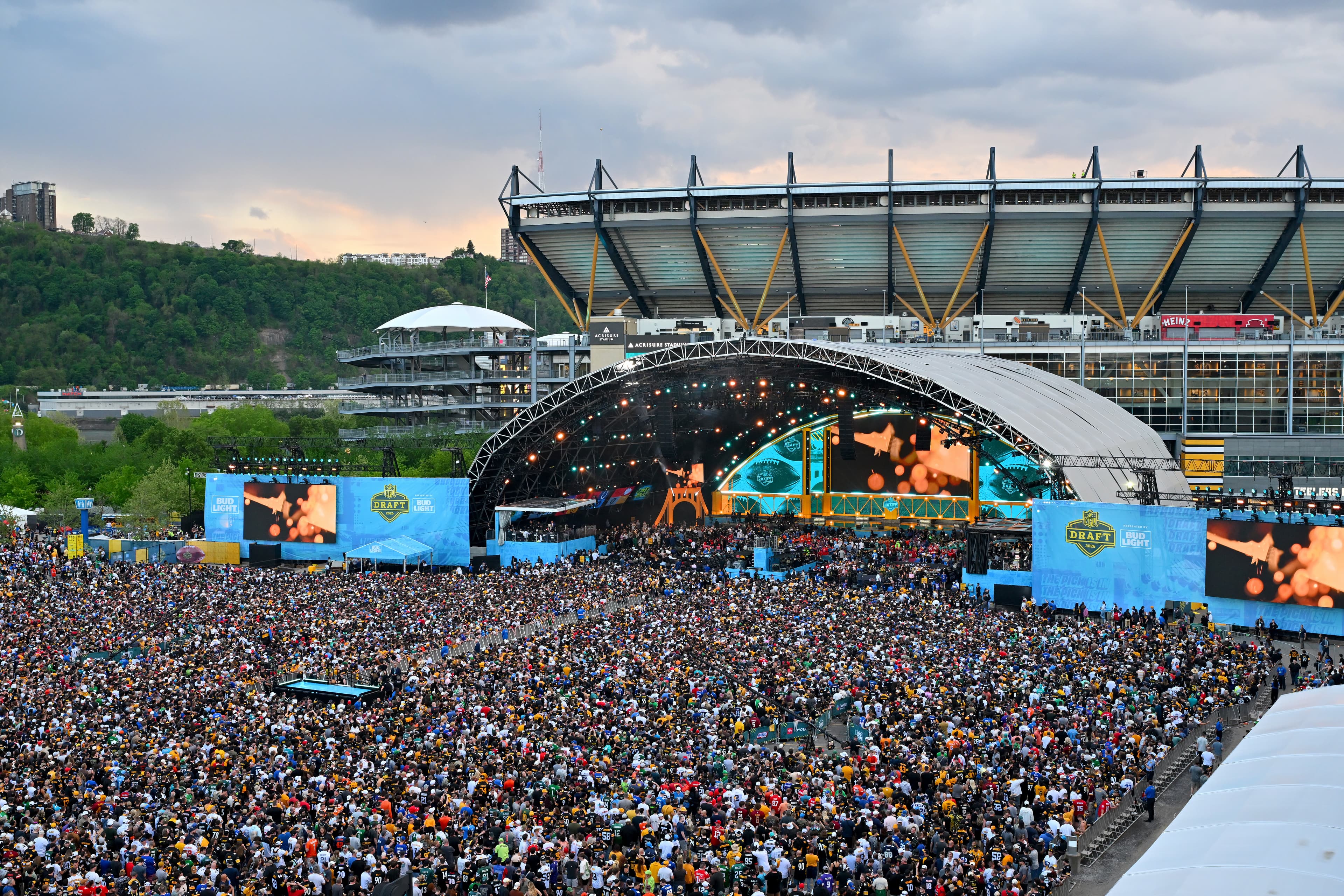 PITTSBURGH, PENNSYLVANIA - APRIL 23: A general view of the draft tent is seen prior to Round One of the 2026 NFL Draft at Acrisure Stadium on April 23, 2026 in Pittsburgh, Pennsylvania. (Photo by Jason Miller/Getty Images) | Getty Images The 2026 NFL Draft concludes on Saturday as the final four rounds run throughout the afternoon and into the night. Through the first two days, 100 college prospects have been selected as NFL rookies, including six by the Miami Dolphins. On Saturday, 157 more will be selected, including seven scheduled selections by Miami.Everything resumes at noon Eastern and, with just a five minute time limit for picks in most of today’s rounds, things will happen quickly throughout the day.Fourth-Seventh Rounds – Day 3Day: Saturday, April 25Time: 12 p.m. EasternTV Coverage: NFL Network, ESPN, ABC, ESPN Deportes,Streams: ESPN App, Disney+, FuboTVCommentators:NFL Network: Rich Eisen, Daniel Jeremiah, Charles Davis, Joel Klatt, Ian Rapoport, Kurt WarnerESPN: Mike Greenberg, Mel Kiper, Jr., Booger McFarland, Louis Riddick, Adam Schefter, Laura RutledgeABC: College GameDay coverage with Reece Davis, Kirk Herbsteit, Nick Saban, Desmond HowardESPN Deportes: Eduardo Varela, Pablo Viruega, Ciro Procuna, Sebastián Martinez Christensen, Katia CastorenaLength per pick: 5 minutes (Rounds 4-6); 4 minutes (Round 7)Fourth Round Draft OrderBuffalo Bills (from Titans)Las Vegas RaidersNew York JetsArizona CardinalsLos Angeles Chargers (from Giants via Browns)Houston Texans (from Commanders)San Francisco 49ers (from Browns)Denver Broncos (from Saints)Kansas City ChiefsCincinnati BengalsDenver Broncos (from Dolphins)Dallas CowboysIndianapolis ColtsDallas Cowboys (from Falcons via Eagles)Baltimore RavensTampa Bay BuccaneersHouston Texans (from Vikings via Jaguars via Raiders)Detroit LionsCarolina PanthersGreen Bay PackersPittsburgh SteelersAtlanta Falcons (from Eagles)Los Angeles ChargersJacksonville JaguarsBuffalo Bills (from Bears via Chiefs via Patriots )Buffalo BillsSan Francisco 49ersNew York Jets (from Texans via Lions)Chicago Bears (from Rams)Miami Dolphins (from Broncos)Los Angeles Chargers (from Patriots)New Orleans Saints (from Seahawks)San Francisco 49ers*Las Vegas Raiders*Indianapolis Colts (from Steelers)*New Orleans Saints*Dallas Cowboys (from Eagles)*Miami Dolphins (from 49ers)*San Francisco 49ers*New York Jets*Fifth Round Draft OrderHouston Texans (from Raiders via Browns)Tennessee Titans (from Jets via Ravens)Arizona CardinalsChicago Bears (from Titans via Rams via Titans)Los Angeles Chargers (from Giants)Cleveland BrownsWashington CommandersCleveland Browns (from Chiefs)Cleveland Browns (from Bengals)New Orleans SaintsMiami DolphinsCleveland Browns (from Cowboys via 49ers)Green Bay Packers (from Falcons via Eagles)Baltimore RavensTampa Bay BuccaneersIndianapolis ColtsDetroit LionsCarolina Panthers (from Vikings)Minnesota Vikings (from Panthers)Tampa Bay Buccaneers (from Packers)Pittsburgh SteelersBaltimore Ravens (from Chargers)Minnesota Vikings (from Eagles)Jacksonville JaguarsTennessee Titans (from Bears via Bills)Jacksonville Jaguars (from 49ers via Eagles)Buffalo Bills (from Texans via Eagles via Texans)Buffalo BillsKansas City Chiefs (from Rams)Denver BroncosNew England PatriotsNew Orleans Saints (from Seahawks)Baltimore Ravens*Baltimore Ravens*Las Vegas Raiders*Kansas City Chiefs*Miami Dolphins (from Cowboys)*Philadelphia Eagles*San Francisco 49ers (from Jets)*Miami Dolphins (from Cowboys)*Detroit Lions*Sixth Round Draft OrderDenver Broncos (from via Browns via Jaguars via Raiders via Bills)Arizona CardinalsTennessee TitansLas Vegas RaidersNew York GiantsWashington CommandersSeattle Seahawks (from Browns)Cincinnati BengalsNew Orleans SaintsNew England Patriots (from Chiefs)New York Giants (from Dolphins)New York Giants (from Cowboys)Tennessee Titans (from Ravens via Jets)Tampa Bay BuccaneersCarolina Panthers (from Colts via Vikings)Philadelphia Eagles (from Falcons)New England Patriots (from Vikings via Texans via Vikings via 49ers)Cincinnati Bengals (from Lions via Browns)Carolina PanthersGreen Bay PackersLos Angeles Chargers (from Steelers via Patriots)Jacksonville Jaguars (from Eagles via Texans via Eagles)Los Angeles ChargersDetroit Lions (from Jaguars)Los Angeles Chargers (from Bears via Cavaliers)Los Angeles Rams (from Texans via Rams via Titans)Las Vegas Raiders (from Buffalo Bills via New York Jets)Washington Commanders (from 49ers)Kansas City Chiefs (from Rams)Baltimore Ravens (from Broncos via Jets via Vikings via Eagles)New England PatriotsDetroit Lions (from Seahawks via Jaguars)Indianapolis Colts (from Steelers)*Atlanta Falcons (from Eagles)*Seattle Seahawks (from Steelers)*Seventh Round Draft OrderArizona CardinalsDallas Cowboys (from Titans)Las Vegas RaidersBuffalo Bills (from Jets)Cincinnati Bengals (from Giants via Cowboys)Detroit Lions (from Browns)Washington CommandersPittsburgh Steelers (from Saints via Patriots)Tennessee Titans (from Chiefs via Cowboys)Cincinnati B