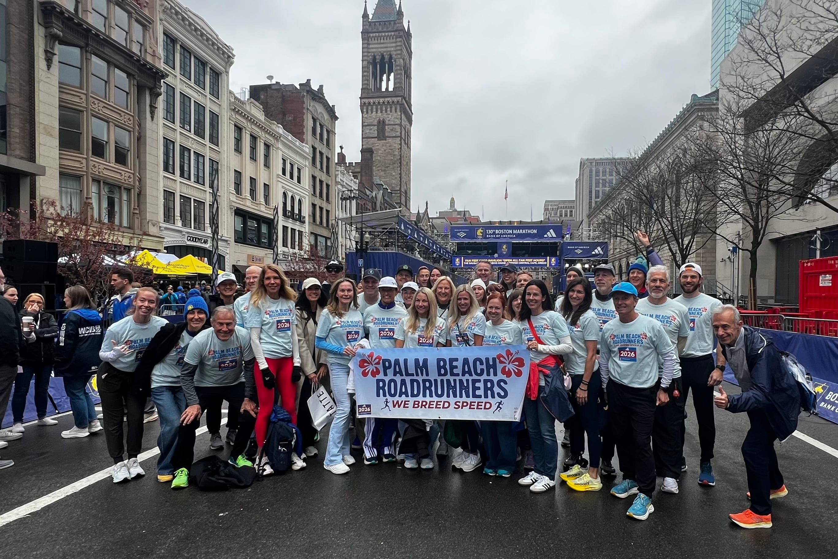The excitement at this moment was palpable and mirrored the racing pulses of the crowd.The excitement reached its peak at the starting line, where the iconic blue and yellow paint marked the beginning of the 26.2-mile pilgrimage through Greater Boston. Under the gaze of the "It All Starts Here" sign, the starter’s gun triggered an immediate, adrenaline-fueled plunge.Runners were catapulted down a dramatic 200-foot drop in the first half-mile, a steep downhill rush flanked by cheering locals who pushed us out of the village and toward the distant Boston skyline.The Palm Beach Roadrunners, my partners in training for the last two years, brought 21 members to Beantown.The Hopkinton roar feels a world away from where it all began: 16 weeks ago, whether standing on the humid, pitch-black asphalt of either Bradley Park or the Dunkin Donuts on Donald Ross Road at 6:30 a.m.