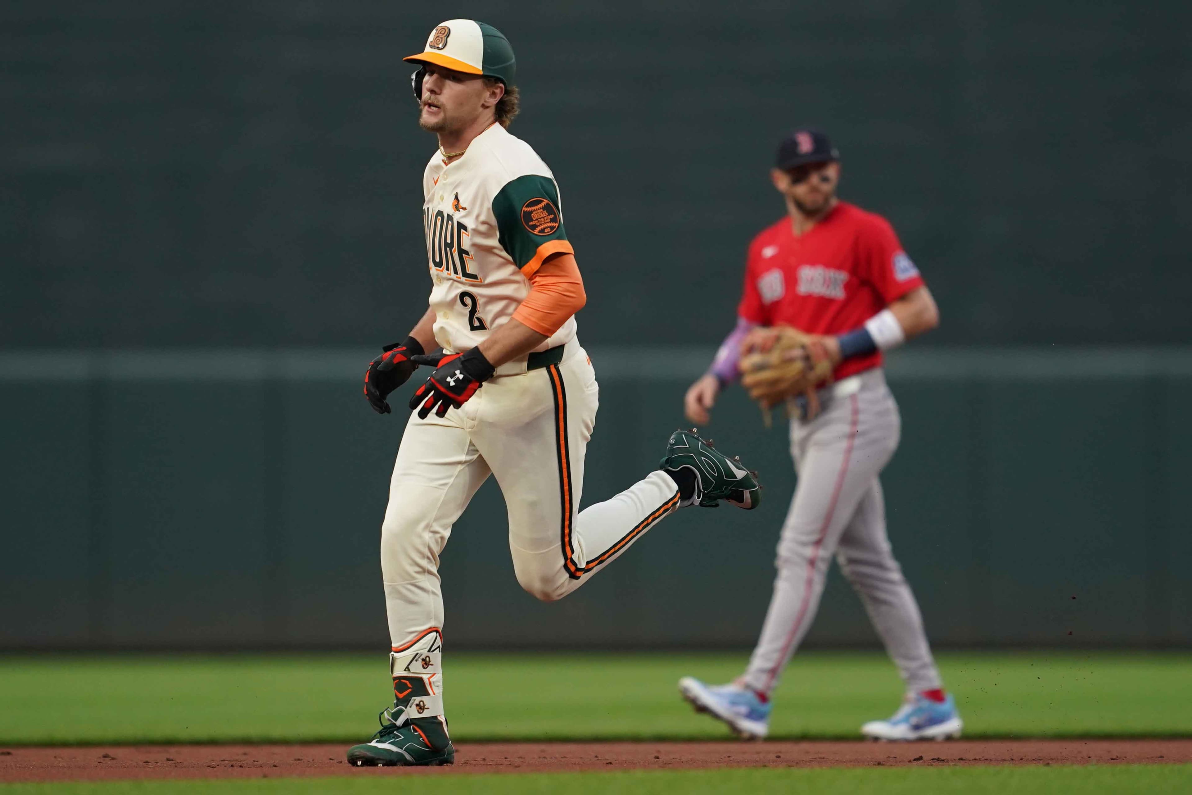 Apr 24, 2026; Baltimore, Maryland, USA; Baltimore Orioles shortstop Gunnar Henderson (2) rounds the bases following his solo home run during the first inning against the Boston Red Sox at Oriole Park at Camden Yards. Mandatory Credit: Mitch Stringer-Imagn Images | Mitch Stringer-Imagn Images I think 20 hits and six home runs against says it all. Thank you, next.StudsWilyer Abreu (2-for-4, 2 runs, 1 RBI)You go down 4-0 after a single frame, what would you hope happens?