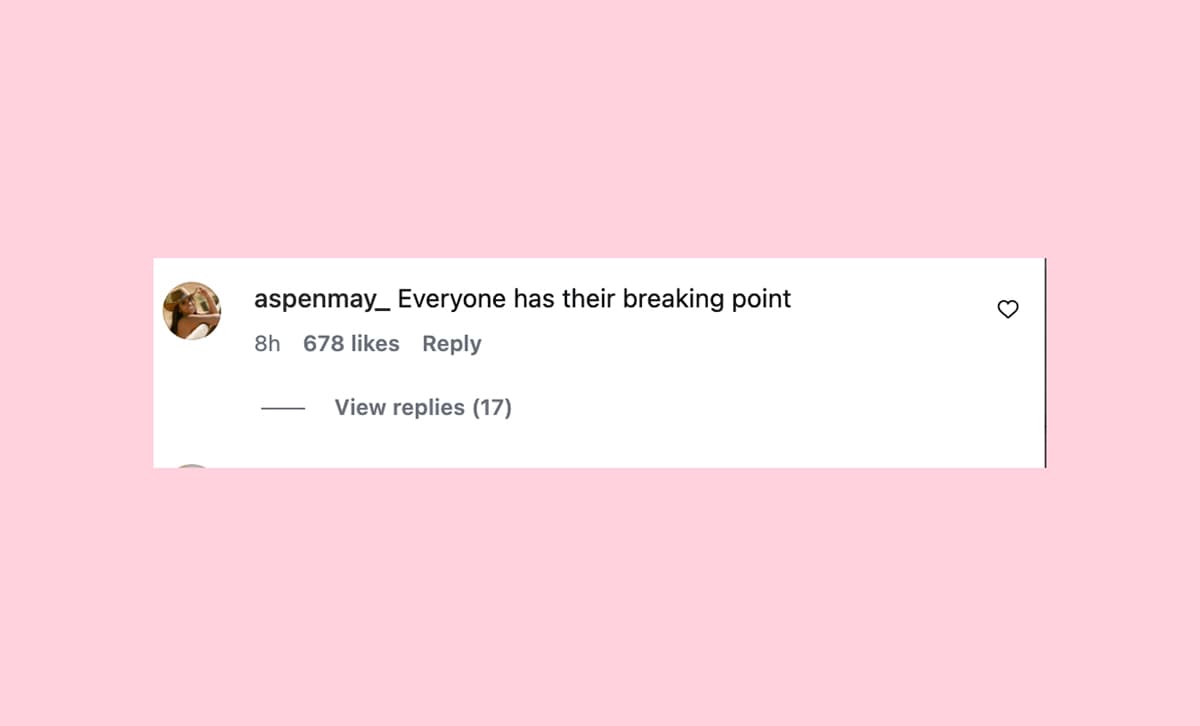 But confident enough to know it would take 3 people.” Telling! Very, very telling! She’s clearly super upset. Her sister, Aspen May, also took to the comments section of Secret Lives Updates on Instagram to say about the news: “Everyone has their breaking point” (c) Secret Lives Updates/Instagram Whoa!