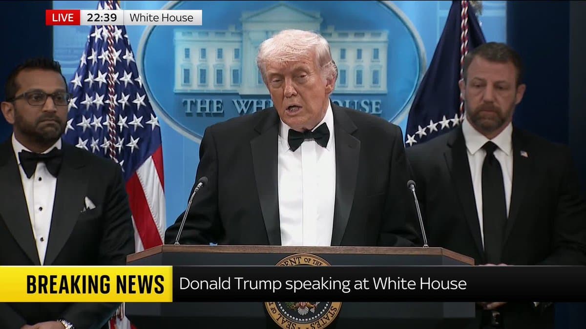 'This was very traumatic for the first lady.' President Trump thanks Melania after shots were fired at the White House correspondents' dinner. 📺 Sky 501, Virgin 602, Freeview 233 pic.